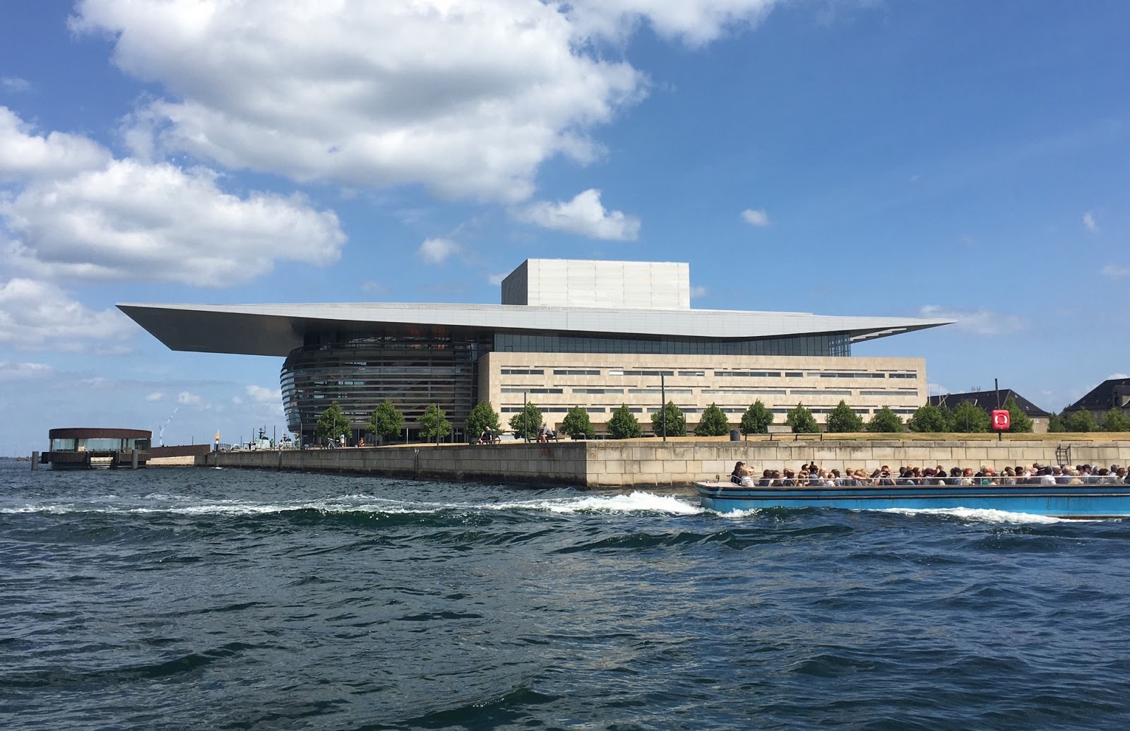 The city is built around the harbor, along with some other remnant waterways and lakes. The port itself has shifted farther out, leaving earlier working waterfronts like Gammel Strand and Nyhavn behind. Spectacular new buildings have been built along the water's edge, including the Opera House, the Royal Danish Playhouse, the Danish Architecture Centre, and the Black Diamond (part of the Royal Library).